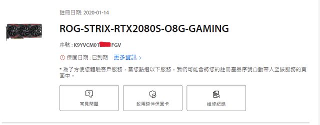 2020/01購買,有申請5年延長保固至2025/01,詳細請參考佐證資料照片
