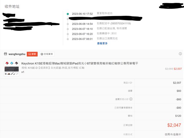 全部附件(USB線、拔軸/拔帽器、MAC替換鍵與保護殼)、完整盒裝