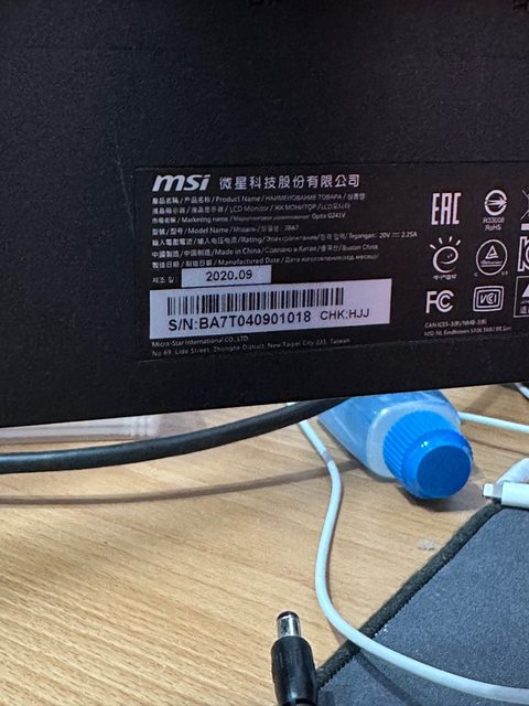 ◎硬體型號:MSI Optix G241V (禁止販售未拆封之物品,贈品、獎品、RMA品、電腦相關