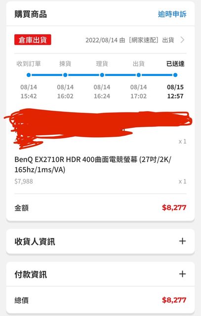 1. 2022/8/15 PChome 24h購入