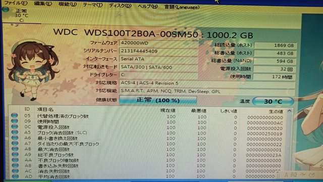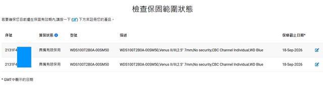 ◎硬體型號: WD Blue 3D SSD 1TB SATA (WDS100T2B0A) x 2