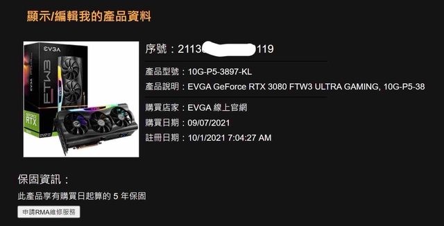 6.顯示卡:EVGA RTX 3080 FTW3 ULTRA GAMING