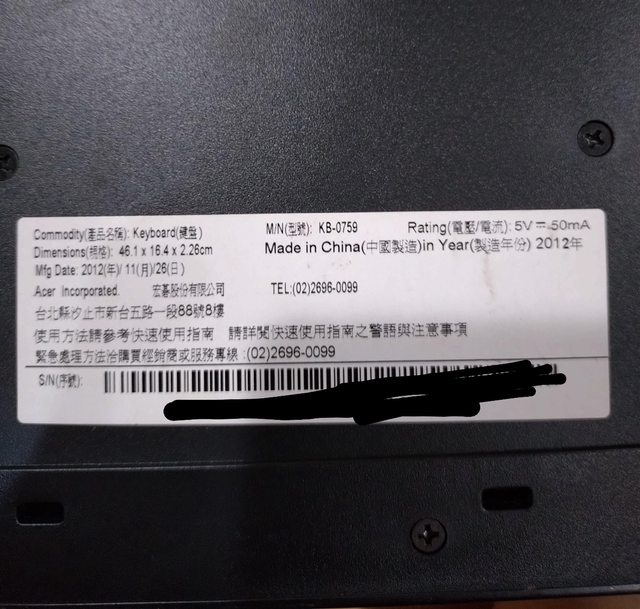 ◎硬體型號: acer KB-0759 套裝機附的鍵盤