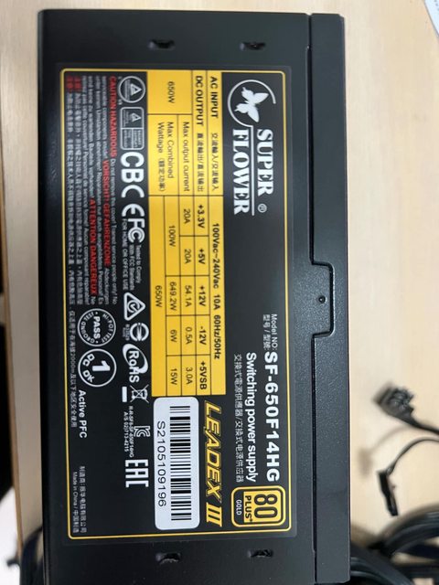 2.振華650W金牌全模組 MB*1 CPU*1 8PIN GPU*2 32PIN SATA*2 4個口 大4PIN*1 3個口