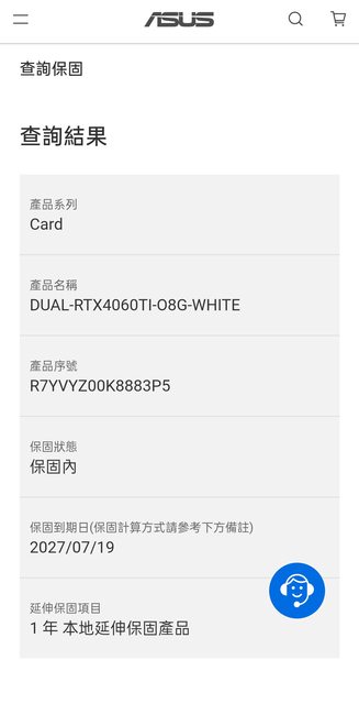 已憑 2023/9 欣亞紙本發票至華碩官網註冊,保固至 2027/7/19