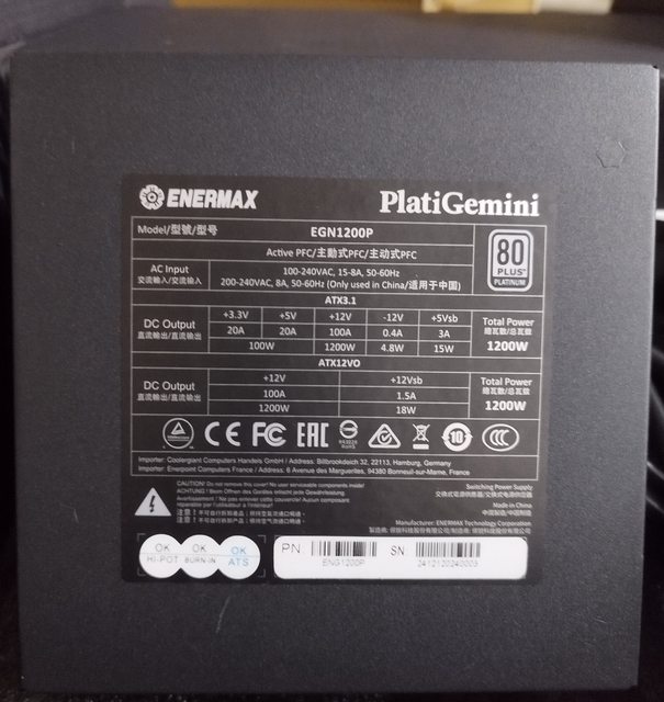 1.ENERMAX 安耐美PlatiGemini 1200W ATX 3.1 & ATX12VO 白金牌全模電源供應器