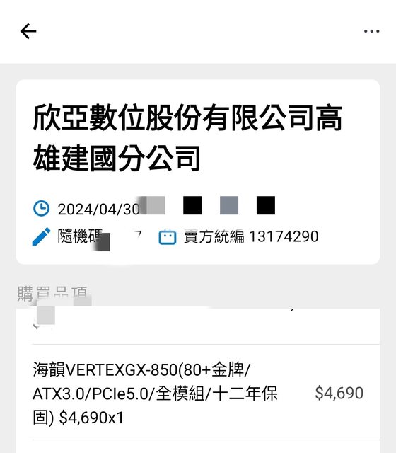 標題[賣/全國/皆可] 海韻VERTEX GX-850 atx3.0