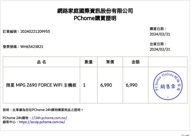 ◎硬體型號: 微星 MSI MPG Z690 FORCE WIFI