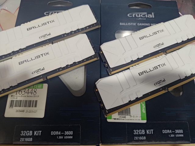 ◎硬體型號: 美光 Ballistix DDR 4-3600 32G kit兩組 白