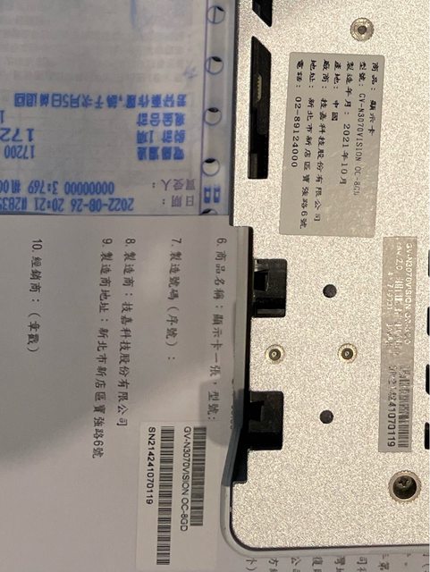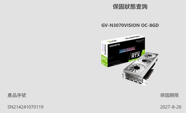 Gigabyte RTX 3070 8G Vision OC 白卡
