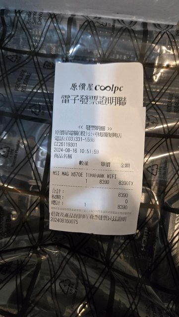 ◎硬體型號:MSI X670E TOMAHAWK WIFI(售出)