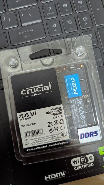 ◎硬體型號:筆電記憶體 美光 DDR5 5600 16G*2 雙通道