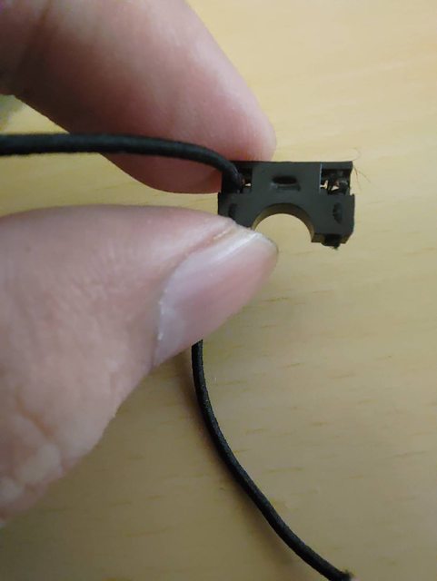 原本的彈力繩是壓合在塑膠塊裡面,但上面有留兩個孔可以穿線