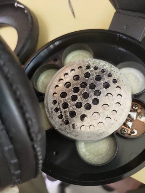 最前面是黑色駐極體,旁邊5顆從動振膜跟線圈,動圈單體被蓋住,正面看不到