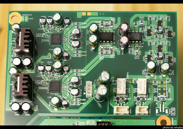 類比部分使用兩顆AK4490,並聯輸出成單聲道正負訊號,過繼電器後輸出
