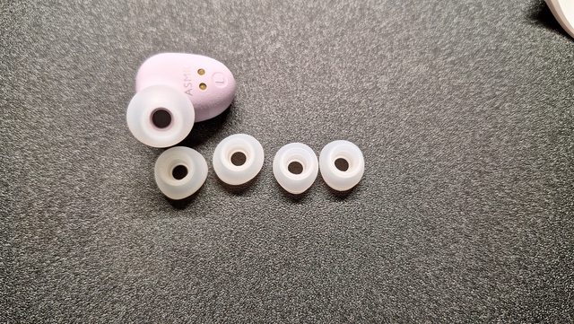 預裝耳塞已經是最大號,我配戴還是要往耳內塞一下才會緊,耳孔大的一定要去試聽配戴