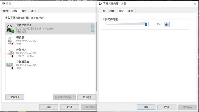 推 Oswyn: 聲音控制台>錄製>G535>接聽 看這頁有沒有鈎到聆聽此裝置 07/09 06:54