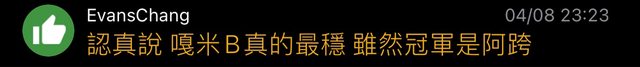 → a3353716: 真的誰是冠軍都沒話說 04/09 00:01