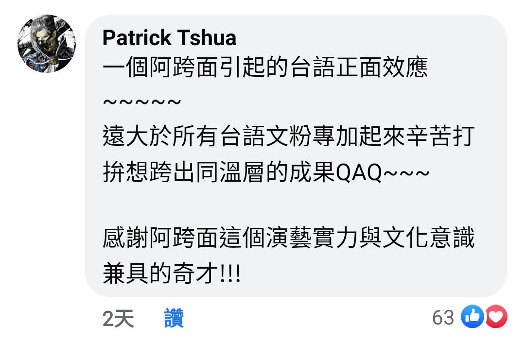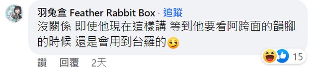 → Gshan: 己的方式表達台語 又不怕被靠北哈哈 會靠北別人的就優越仔 04/13 00:53