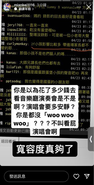 → beck600325: 國蛋老婆發話了 這是演唱會又不是演奏會 請大家對小 04/23 14:38
