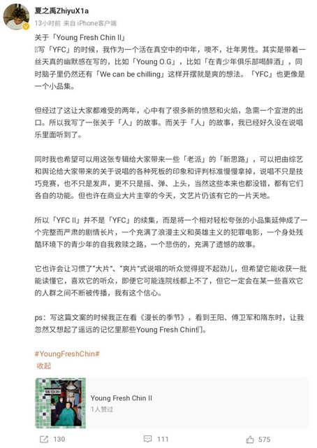 他微博還寫到這張上線後