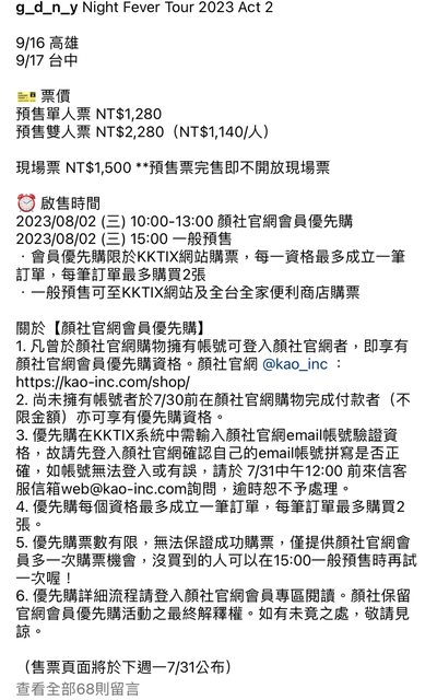→ firetiger: 買到了 優先購 08/02 10:05