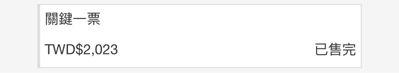 推 tocks2010: 1秒售完 太狠了堡哥 求加票 12/07 22:32