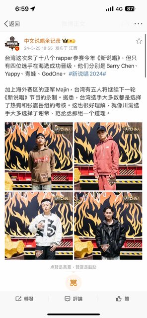 → simon0731: 鱒魚真的好可惜,不過Barry我在小紅書看到有個rapper 03/26 00:24