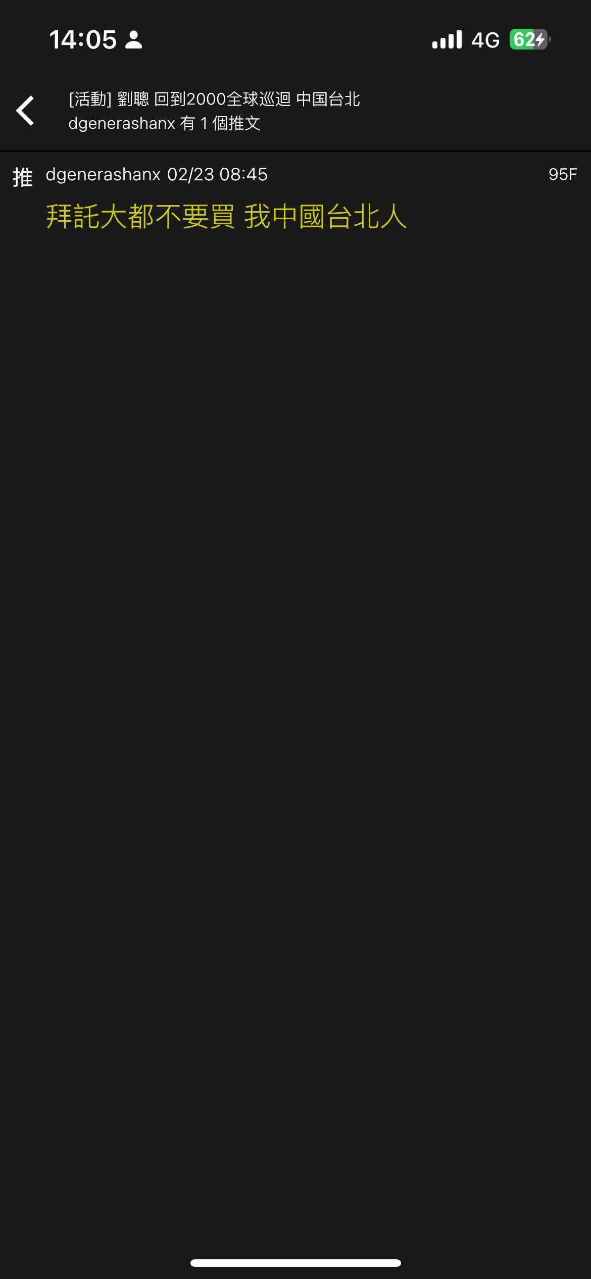 → lonelyQQ: 自己不敢在中國捍衛台灣主權結果去批評中國人來台灣吃豆 04/10 11:47