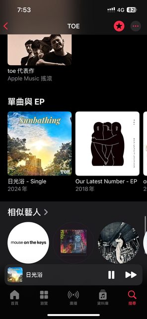 今天AppleMusic跳出來數搖神團toe出新歌