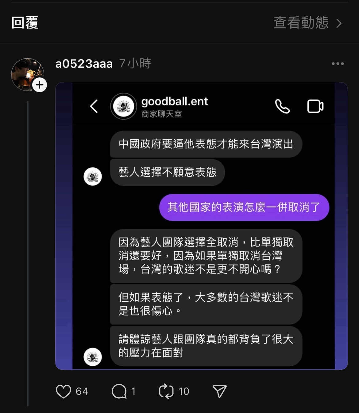推 yixiang921: 台灣放棄全部巡演,但回覆的人又是主辦單位叉滴, 05/30 09:24