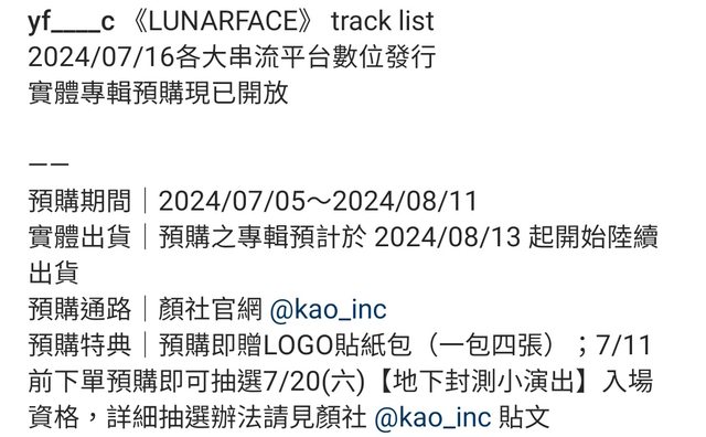 標題[音樂] 趙翊帆 - LUNARFACE 預購 & 曲目