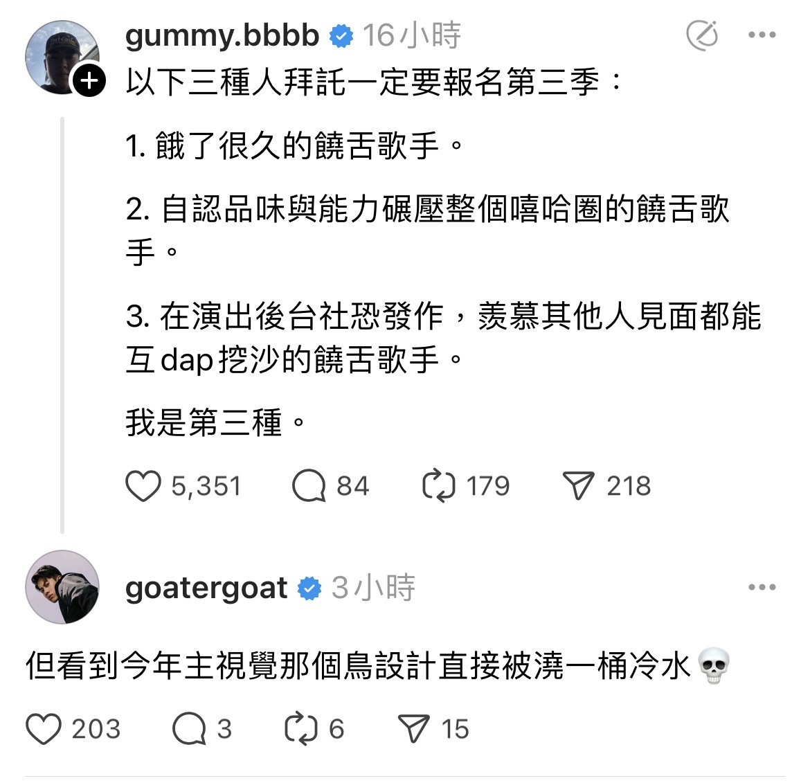 → vvcc15: 想到第二季開始前被眾多饒舌歌手酸爆 還有人出歌Diss 08/05 22:39
