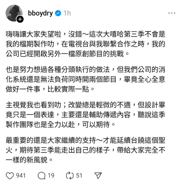 → MK47: 其實做在爛我也會看 因為台灣就這檔嘻哈節目而已XD 08/06 12:41