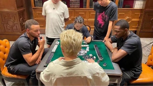 Stephen Curry與De'Aaron Fox在中國體驗麻將。圖/微博