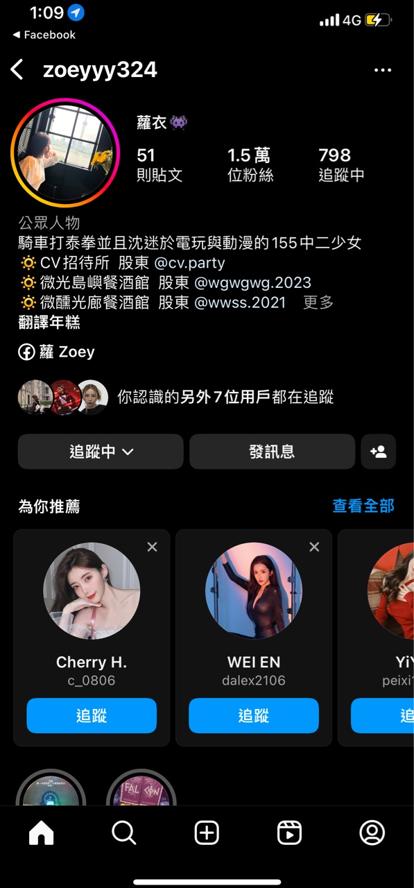 推 majohnman: 記得之前還有追蹤蘿伊ㄉig 後面忘記為什麼就退追了 真 03/25 00:58