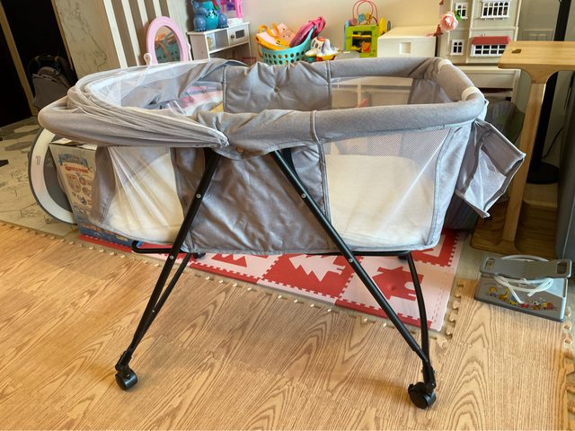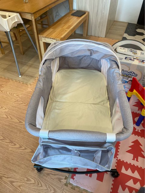 物品項目:嬰兒床邊床(有輪子,也可以調整成搖籃)(購買自蝦皮,介意者勿索取)