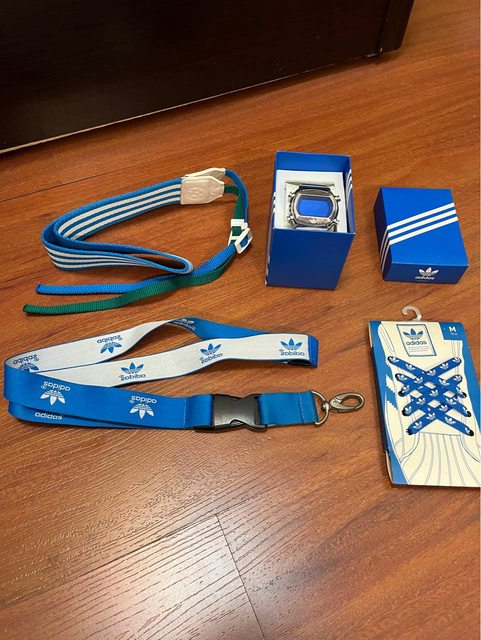 7. (贈出)愛迪達系列: 手錶(沒電、好壞未知)、鞋帶、相機背帶、證件帶,年代久遠,