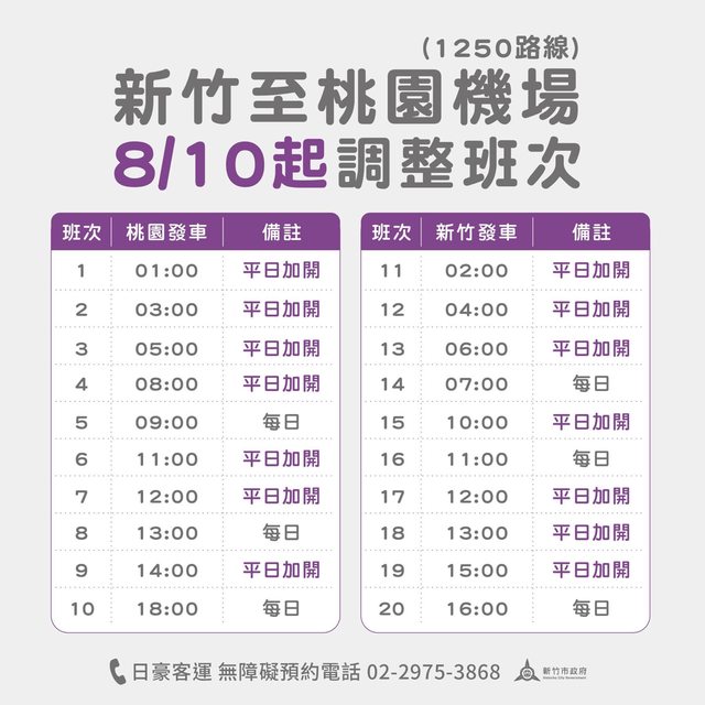 市民朋友期望增加「新竹轉運站-桃園國際機場」1250路線班次,新竹市政府在接獲民眾