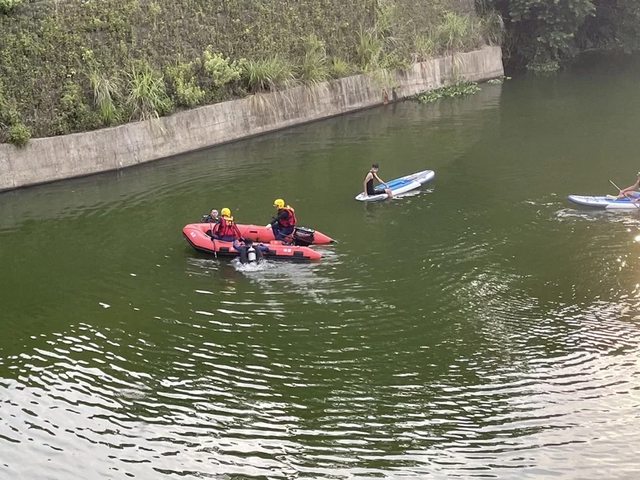 男子在峨眉湖玩立式划槳,疑因重心不穩落水後,隨即沉入水中,警消獲報