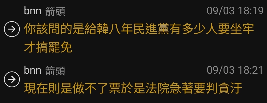 bnn : 你該問的是給韓八年民進黨有多少人要坐牢 才搞罷免 09/03 18:19