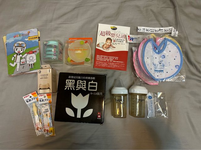 一些嬰兒用品和二手奶瓶,適合4個月以前的嬰兒使用