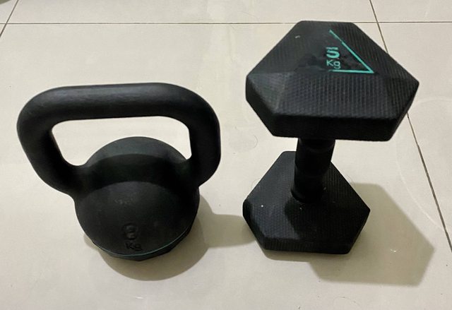 5. 迪卡儂 8KG壺鈴 + 5KG啞鈴:有使用痕跡