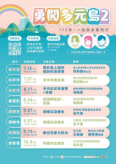 * 邀請所有對性別平等和LGBTQ議題有興趣的民眾,一起來參加「勇闖多元島2」活動!