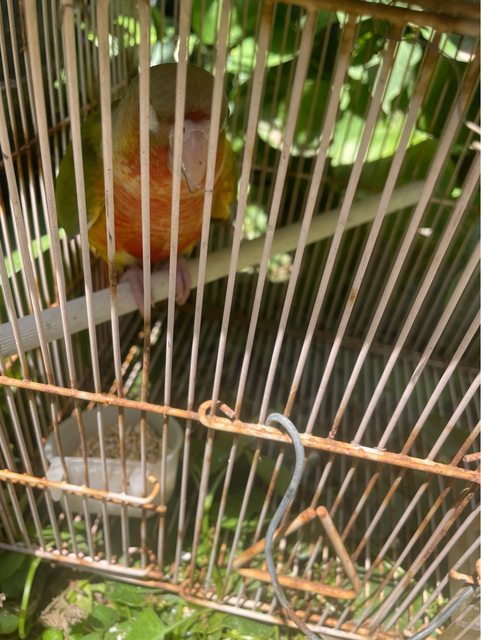 家門口飛來一隻鸚鵡,很主動飛到頭上三四次給人抓,已先把他抓起來,待認領
