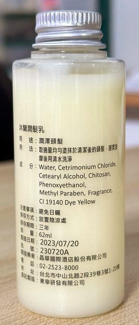 2. 晶華酒店的潤髮乳旅行瓶,保存期限至2026/07/20