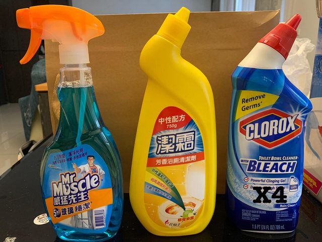 物品項目:玻璃清潔、水垢清潔、馬桶清潔