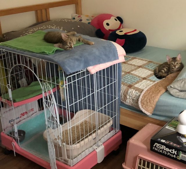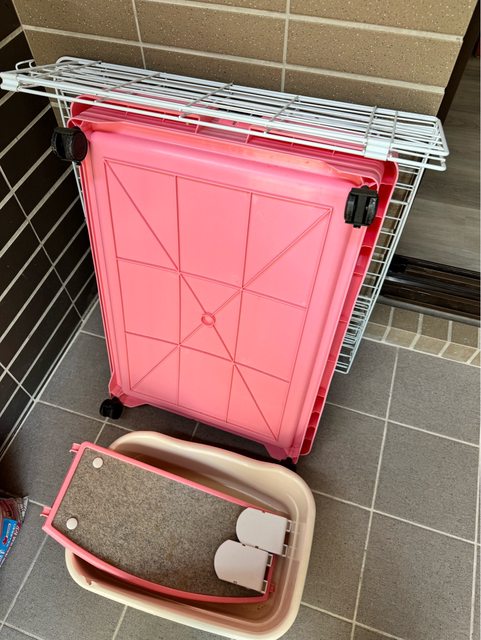 備 註:寶貝們2個月領養回時用的隔離籠+寶寶用小砂盆(有使用痕跡)。