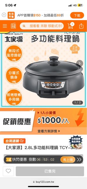 2.大家源 多功能料理鍋 無鍋蓋(有使用痕跡 自行清理