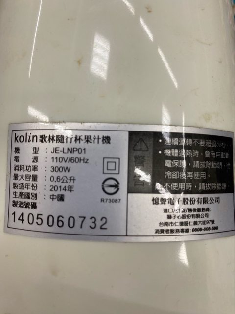 4.歌林隨行杯機體(無法轉動